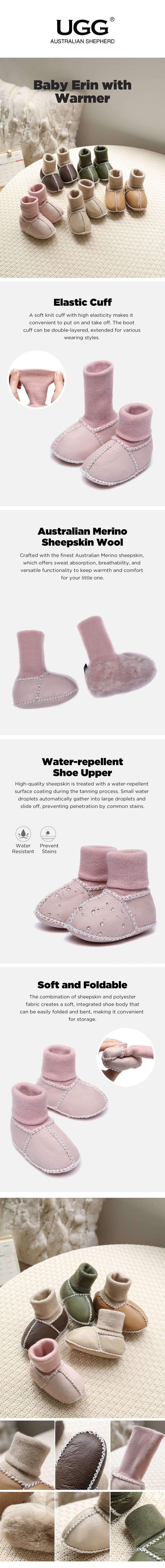 - The baby sheepskin boots that use Australian wool are breathable and have unique moisture properties that keep your feet cool in summer and warm in winter.