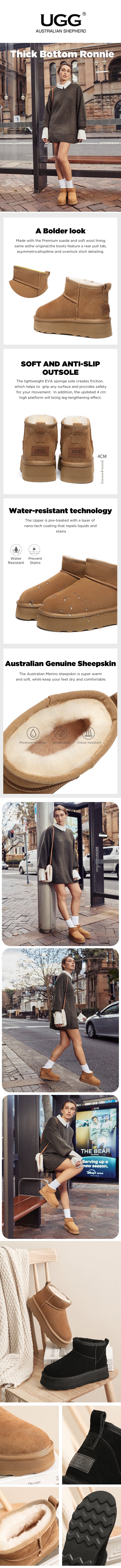 AUSTRALIAN SHEPHERD® UGG Boots Sheepskin Wool Mini Platform Thick Bottom Ronnie #AS3033