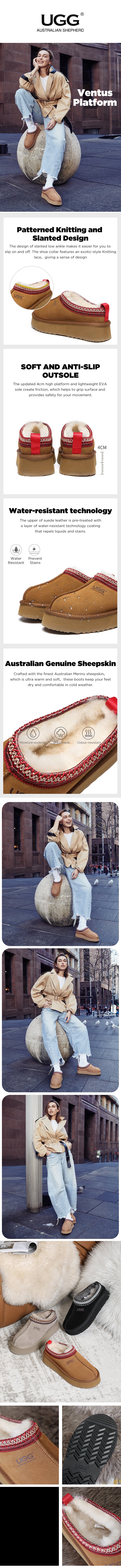 AUSTRALIAN SHEPHERD® UGG Slippers Sheepskin Wool Ankle Platform Tazzy Ventus #AS2053