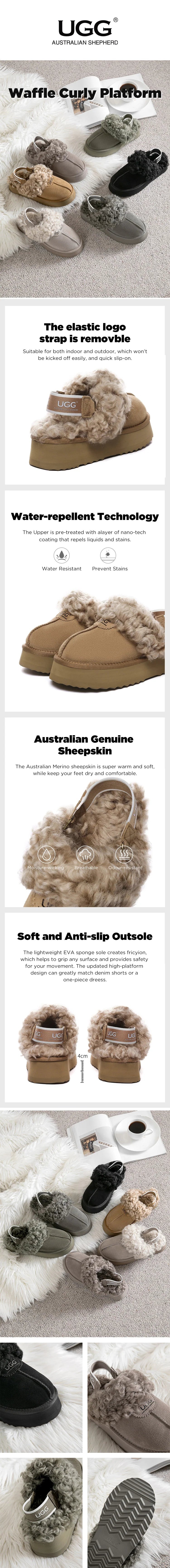 AUSTRALIAN SHEPHERD® UGG Slippers Women Removable Strap Slingback Platform Waffle Curly #AS2074
